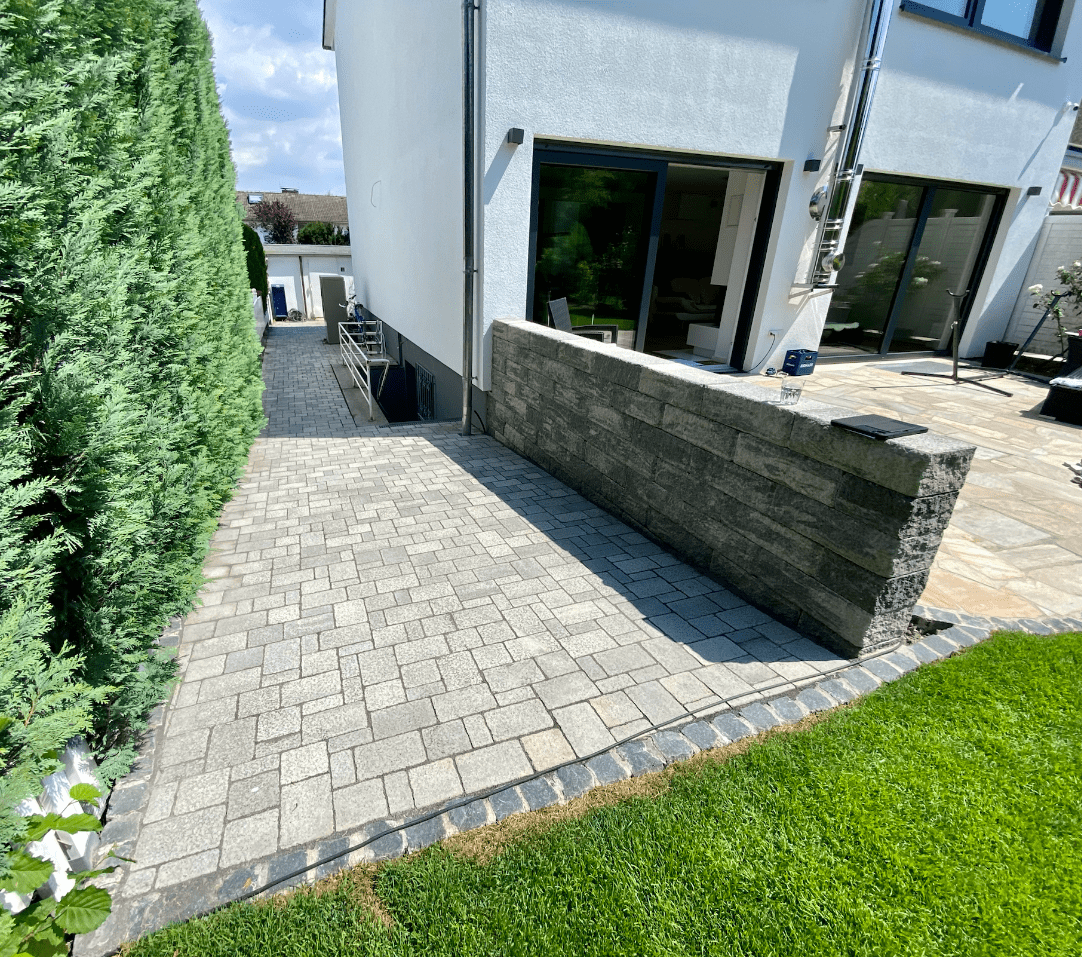 Unsere pragmatischen Pflasterarbeiten umfassen die Verwendung von hochwertigen Pflastersteinen, die Installation von Entwässerungsrinnen und Palisaden sowie die Gestaltung mit dekorativem Kies. Um Ihre Einfahrt oder Ihren Gehweg bauen zu lassen & optimal in Szene zu setzen, bieten wir zudem die Integration von passender LED-Beleuchtung an. Diese beleuchtet nicht nur Ihre Wege, sondern schafft auch eine einladende und sichere Atmosphäre. Wir kümmern uns sowohl um das Einfahrten pflastern als auch um einfache Pflasterarbeiten, wenn Sie nur Ihren Garten mit Pflastersteinen verlegen lassen wollen.